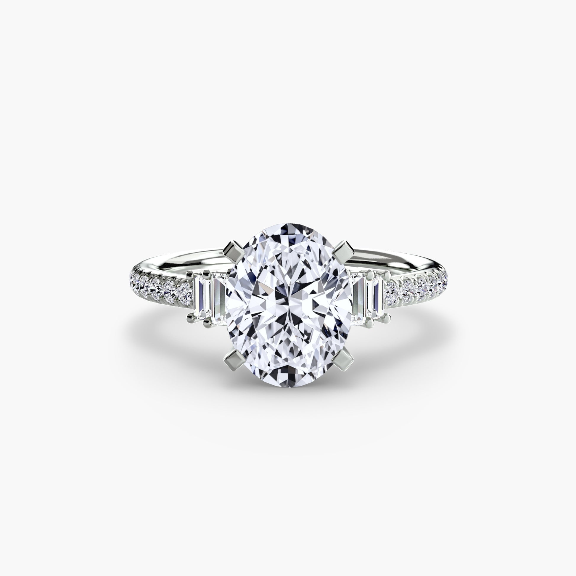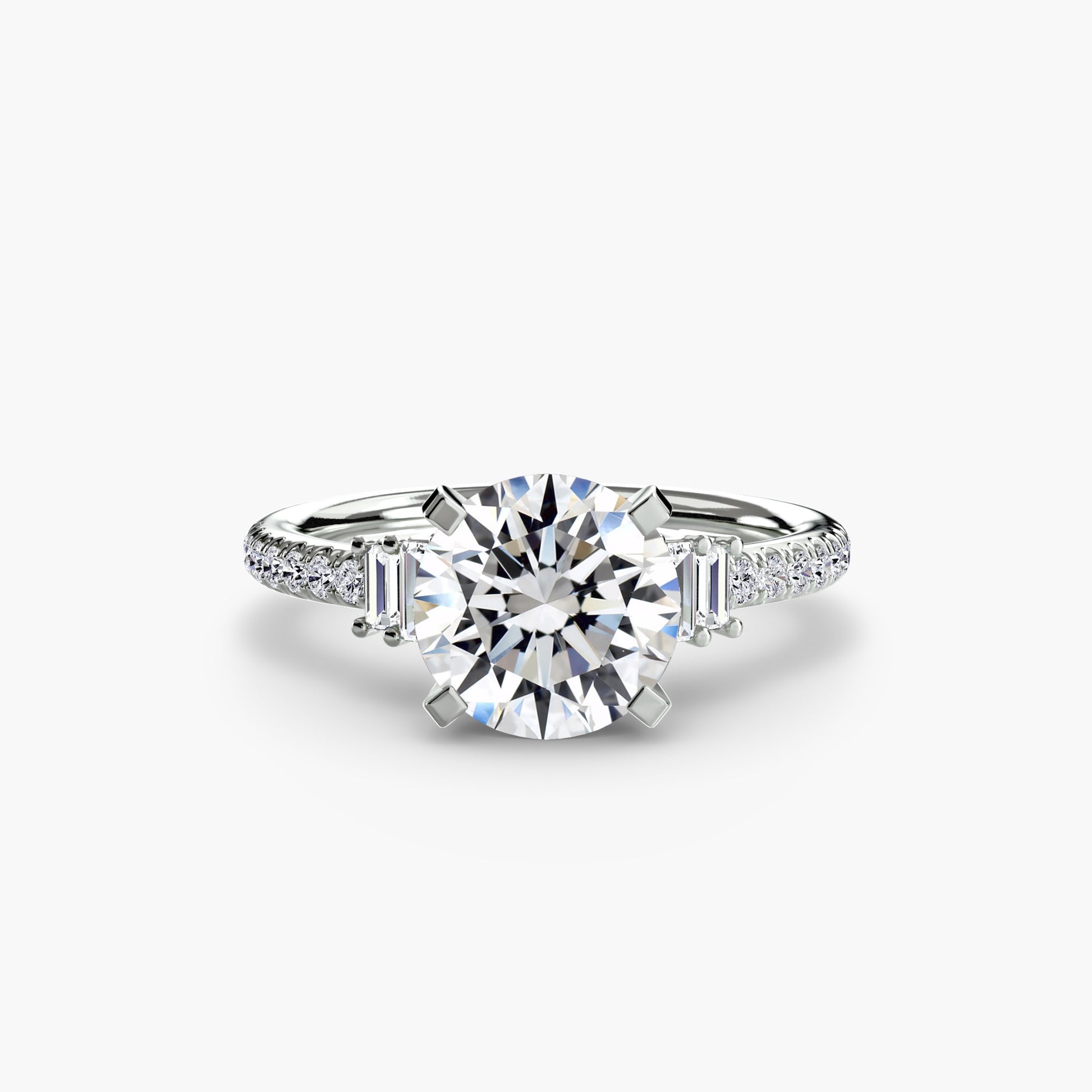 Su diseño de proporciones equilibradas permite que el diamante central conserve el protagonismo mientras los laterales aportan un brillo continuo y delicado.