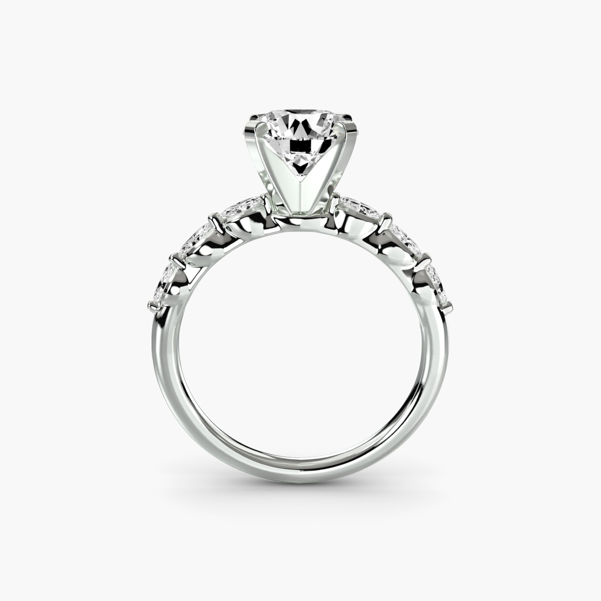 El Solitario con Detalle Floral combina la pureza de un diseño clásico con la delicadeza de pequeños diamantes laterales que evocan pétalos alrededor del diamante central.