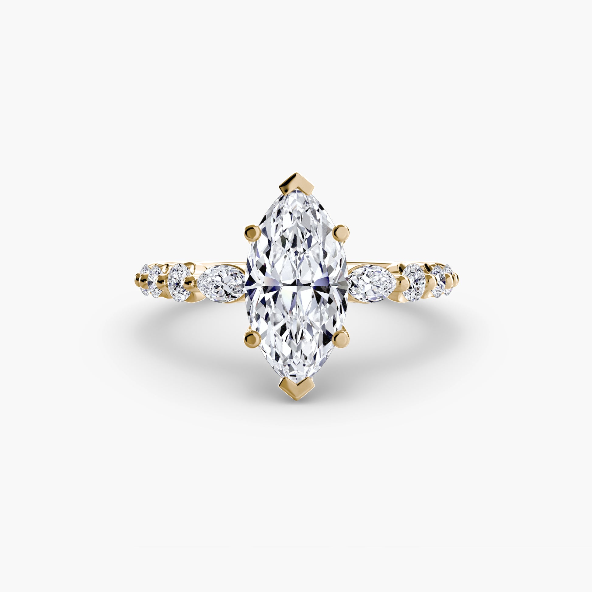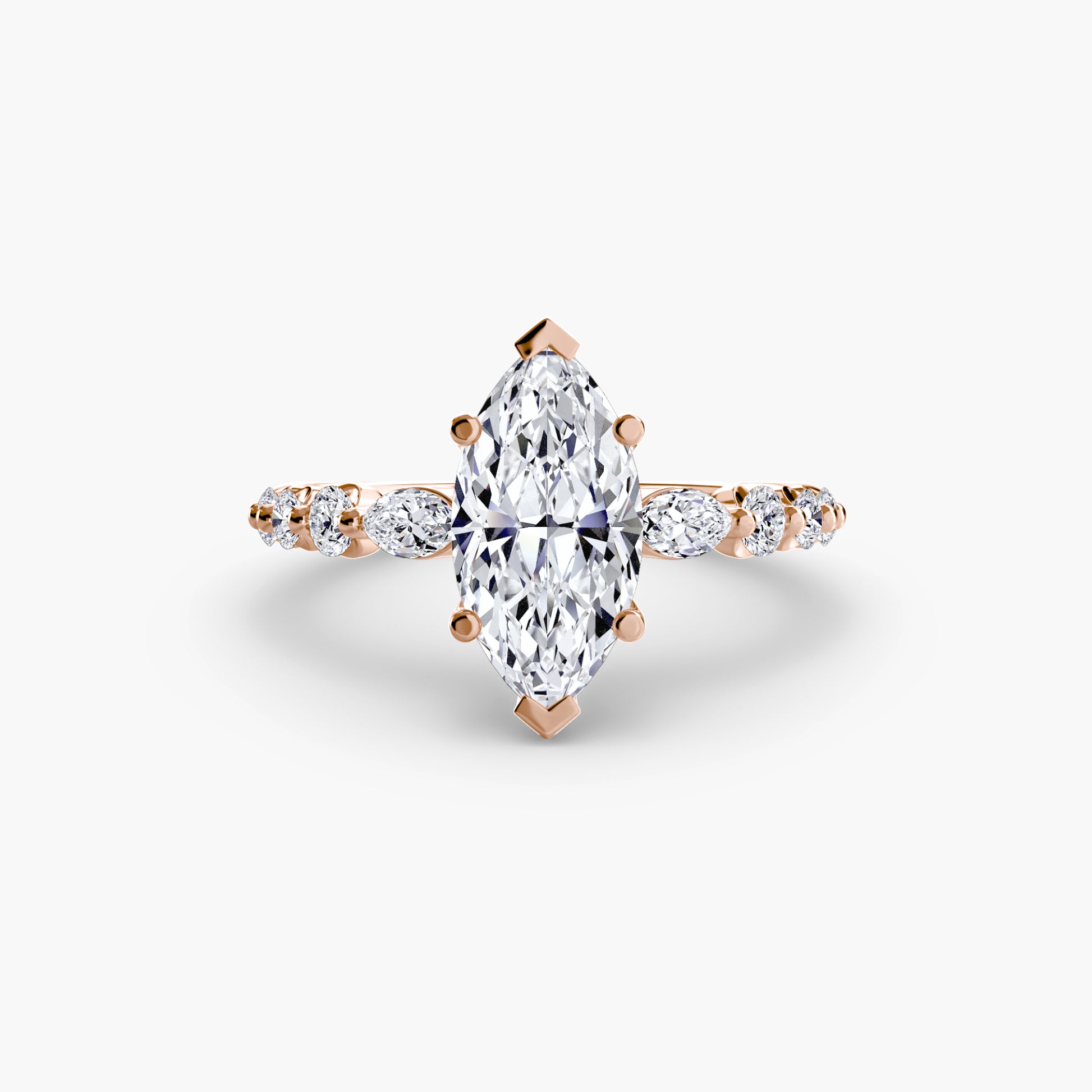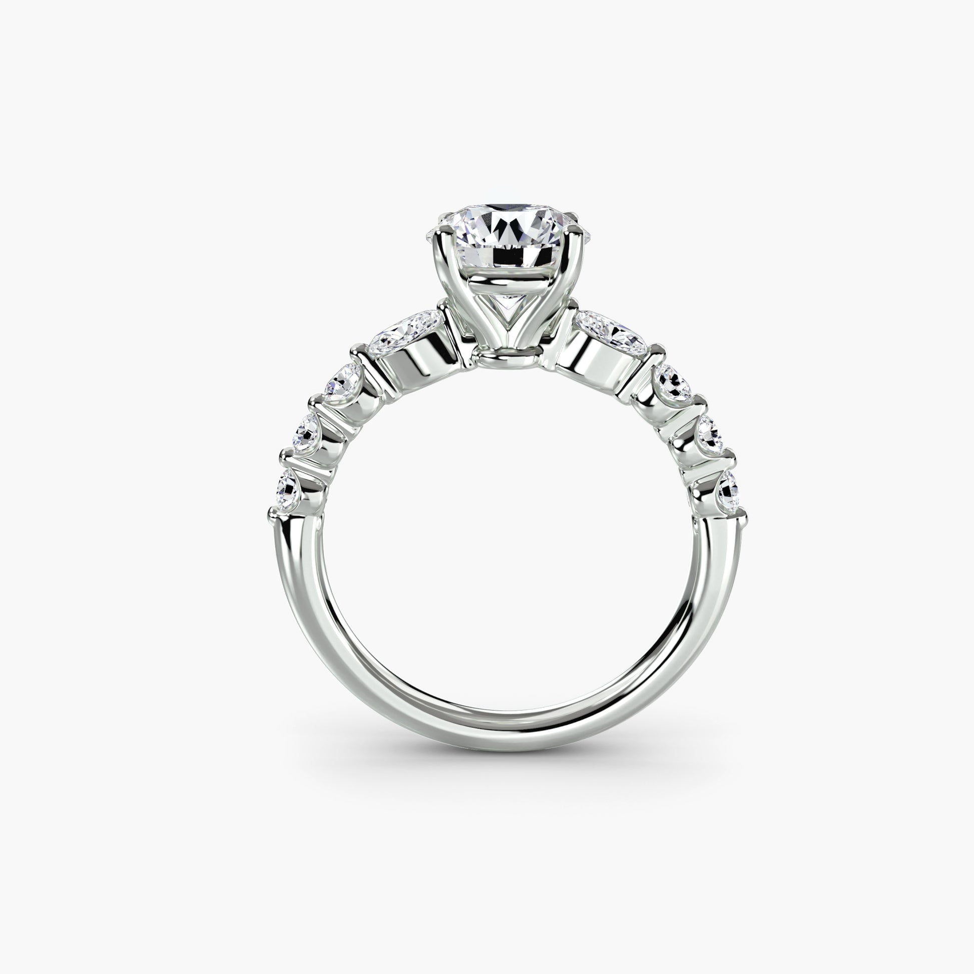 Cada piedra realza la siguiente, creando una línea ascendente de luz que dirige todas las miradas hacia el centro del anillo.